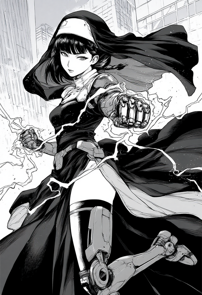 Faith meets circuitry in a world rebuilt from the ashes of collapse.